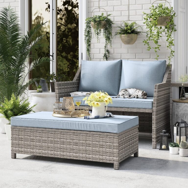 2pcs Loveseat Set with Storage Bin Wicker Outdoor Conversation Set