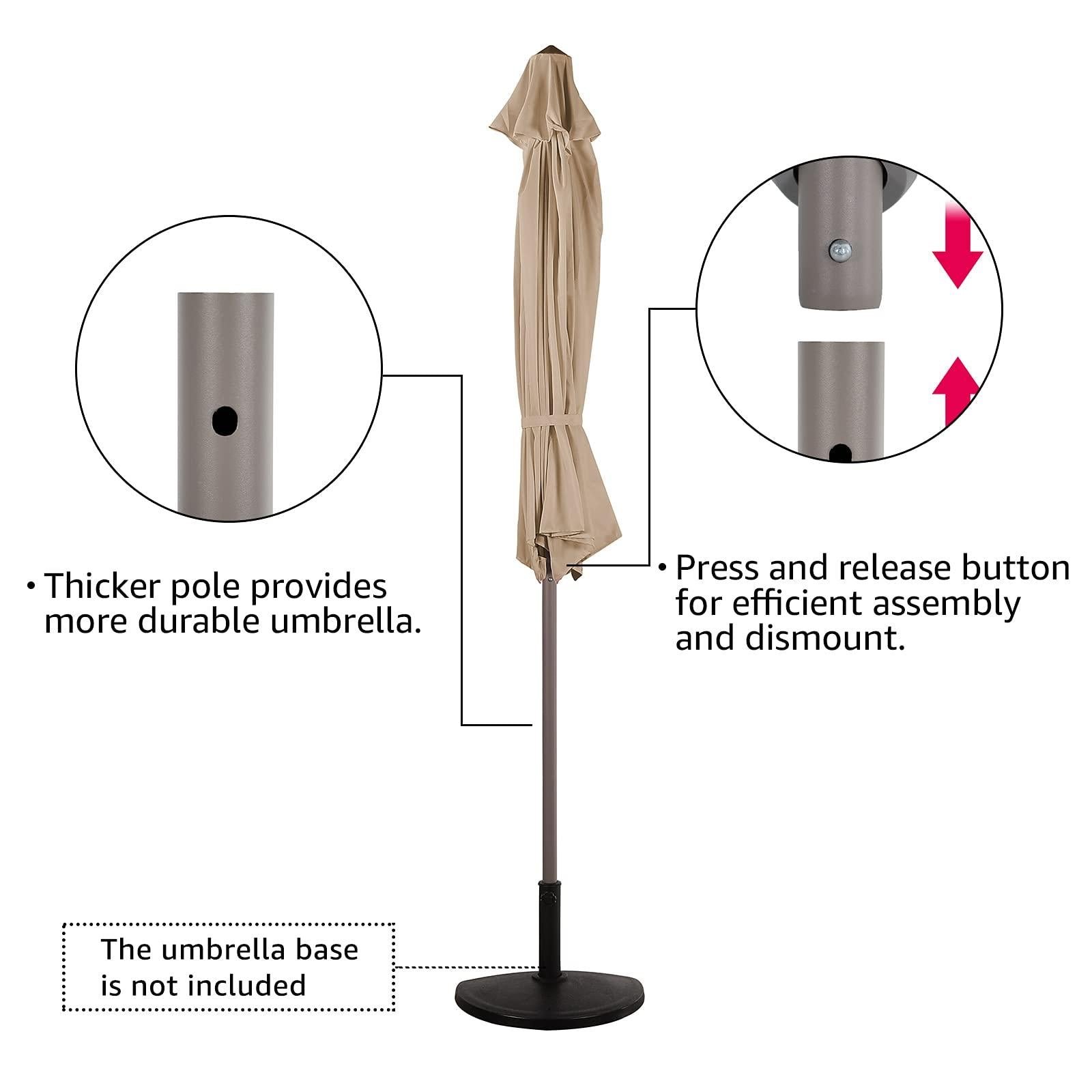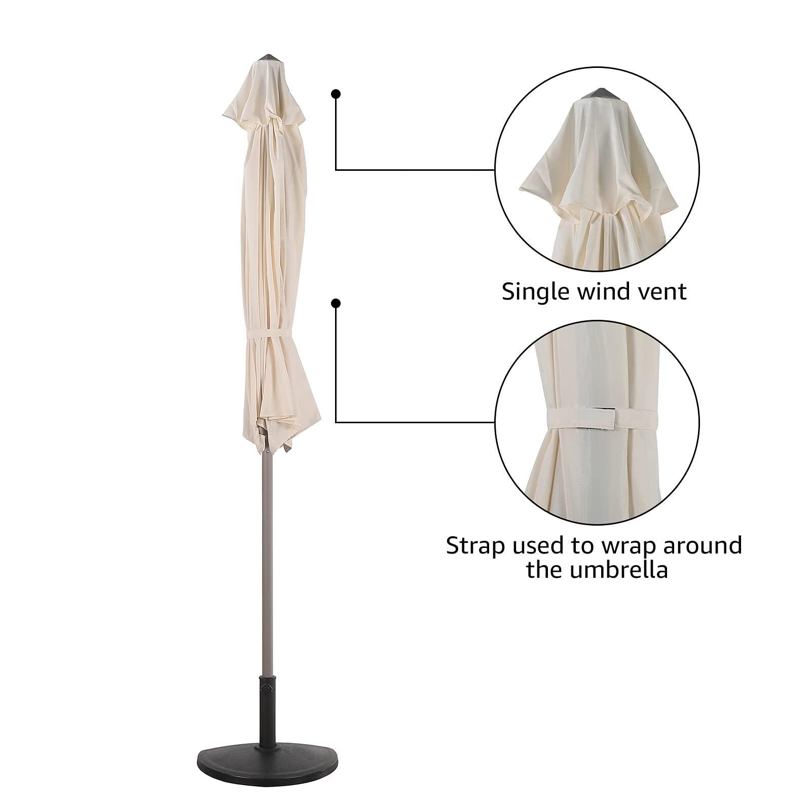 - Durable Fabric-Made of a water/UV-resistant, breathable, light filtering polyester fabric, with a steel frame and air vent that provides optimal wind resistance to keep your umbrella in place. Seamed ribbon for better protection when it is closed
