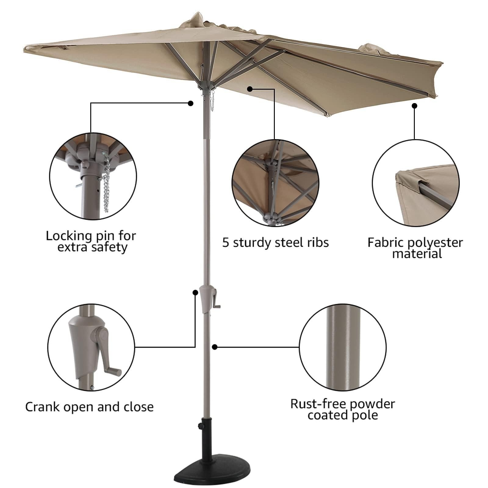 - Sturdy Construction– Our half patio umbrella is made of 5 supporting steel ribs and a steel pole, rust-free powder coated provides trusted durability while relaxing outdoors