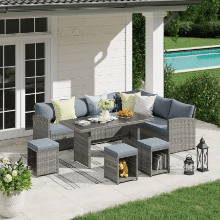 8 Seats Outdoor Sofa Dining Set Wicker Patio Sectional Set with Dining Table