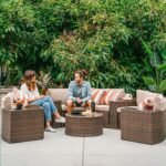 - ćHandcrafted All-Weather Wickerć – The faux rattan gives the look and texture of natural rattan with the durability and UV resistant of resin. Featuring poly rattan that is elegantly woven over durable powder-coated steel frames and paired with UV/fade resistant cushions to provide not only comfort but durability.