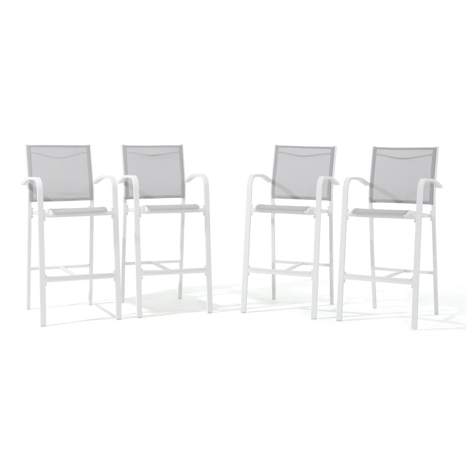 2-4 pcs Outdoor Bar Stools, All-Weather Aluminum Textile Fabric High Top Patio Chair