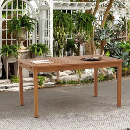 7 pcs Outdoor Wood Dining Set, Extendable Rectangular Table and 6 Stackable Chairs
