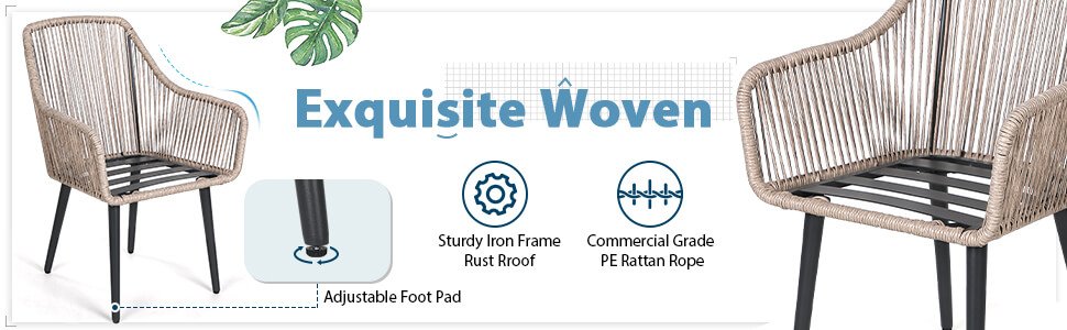 - [Attractive Dining Chairs]: The outdoor dining chairs are simultaneously warm and inviting, stylish and intriguing. It can be used not only for multi-person dining but also for entertaining guests. Attractive weave design and contemporary style combine to add warmth and charm to your outdoor space.