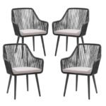 Wicker Outdoor Dining Chairs, All-Weather Woven Rope Rattan Patio Chairs
