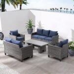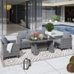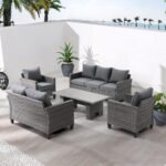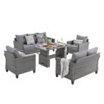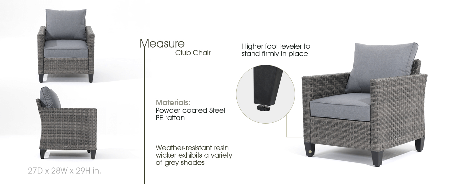 STYLISH DESIGN – Designed for long-lasting quality, the patio furniture set features a rich gray hue all-weather wicker. Curved wider chair back with a higher foot leveler is distinctive and ornamental while the matching lift coffee table offers an extra attractive look.