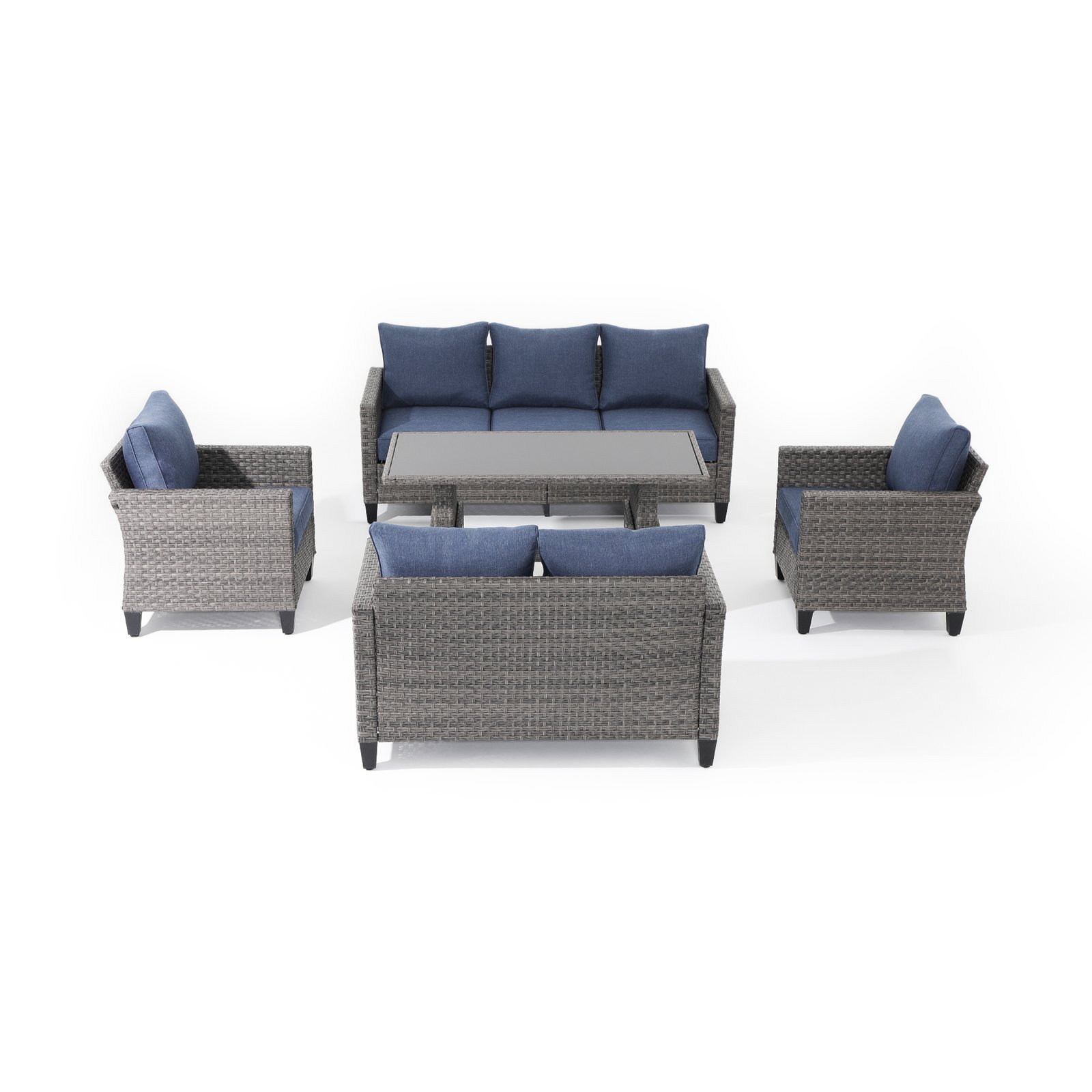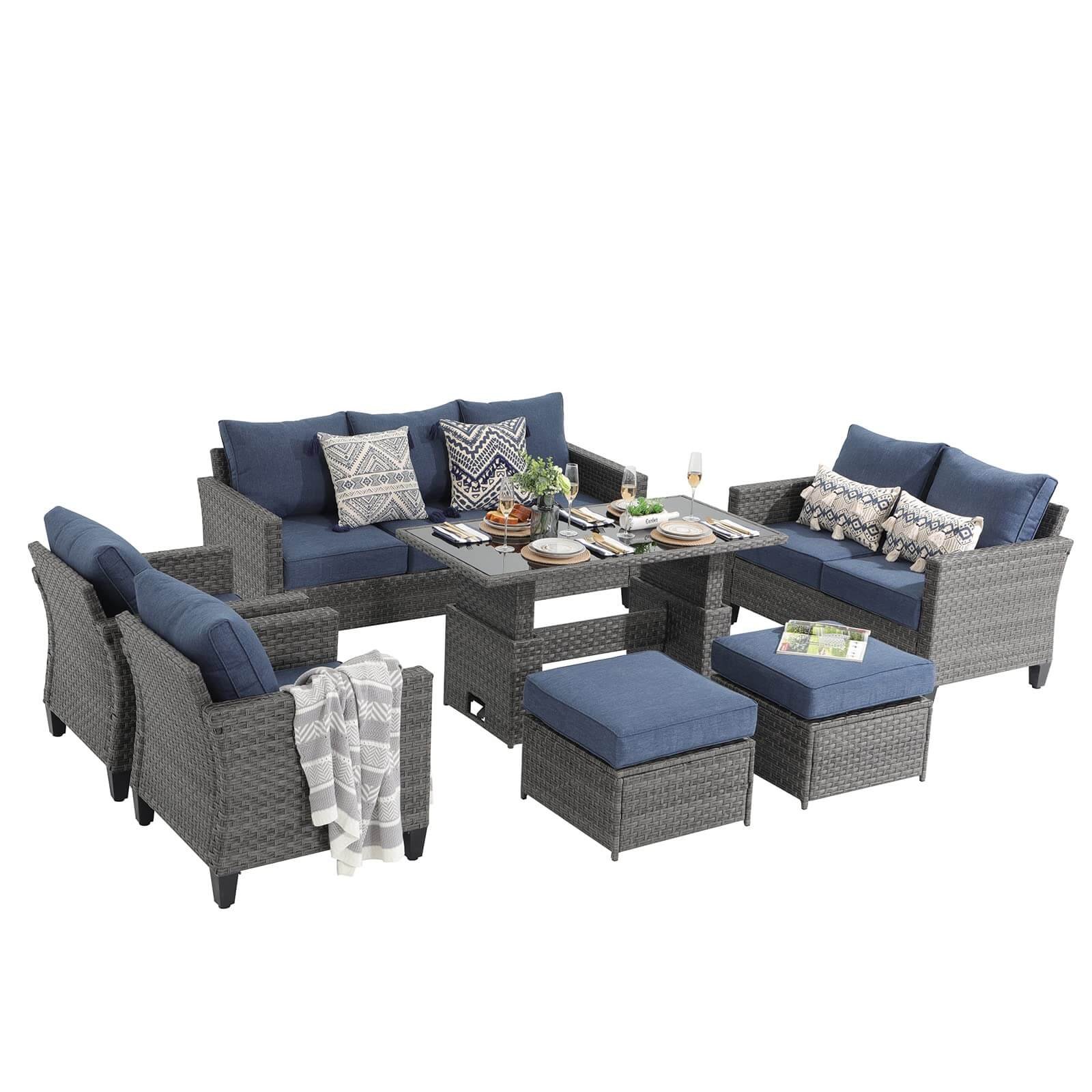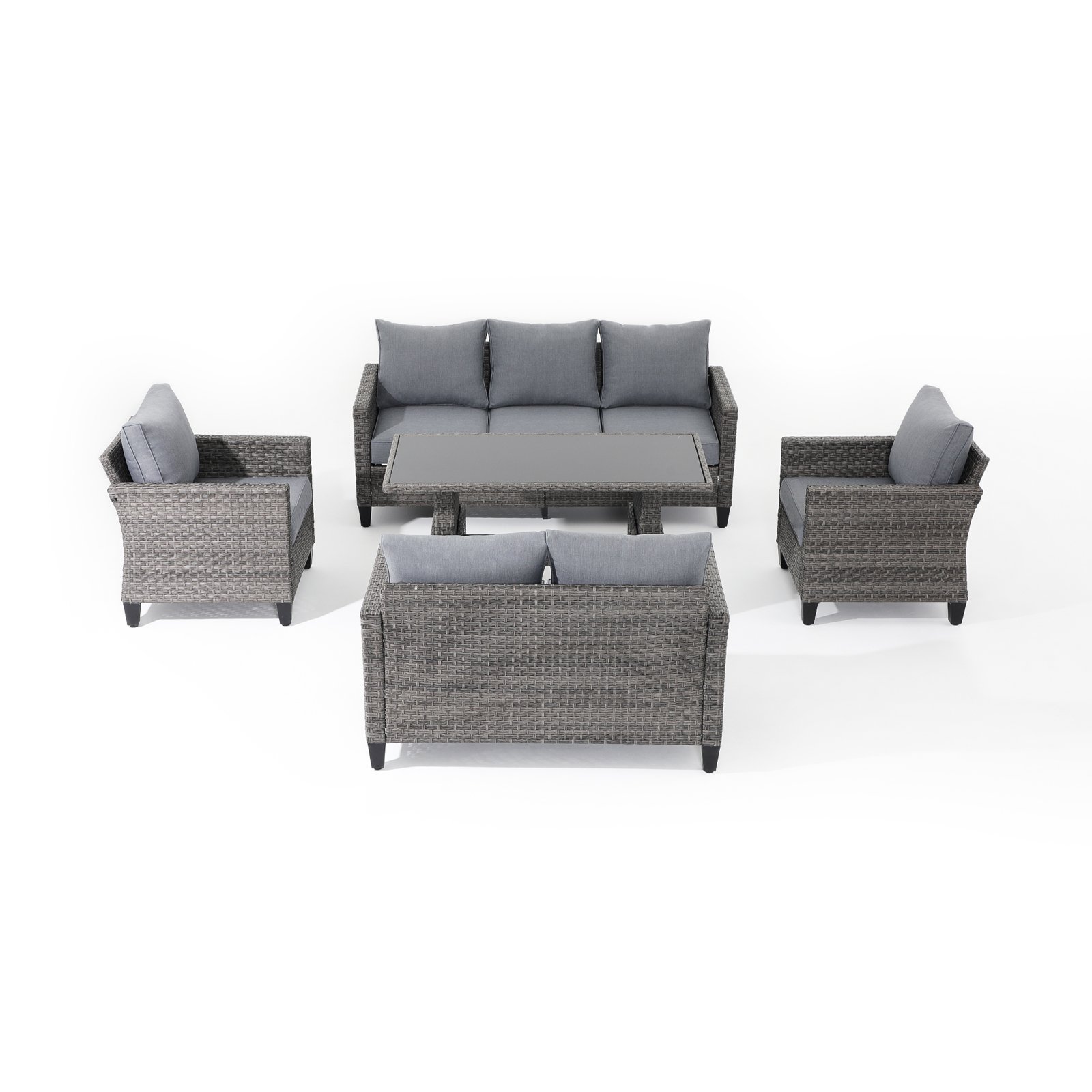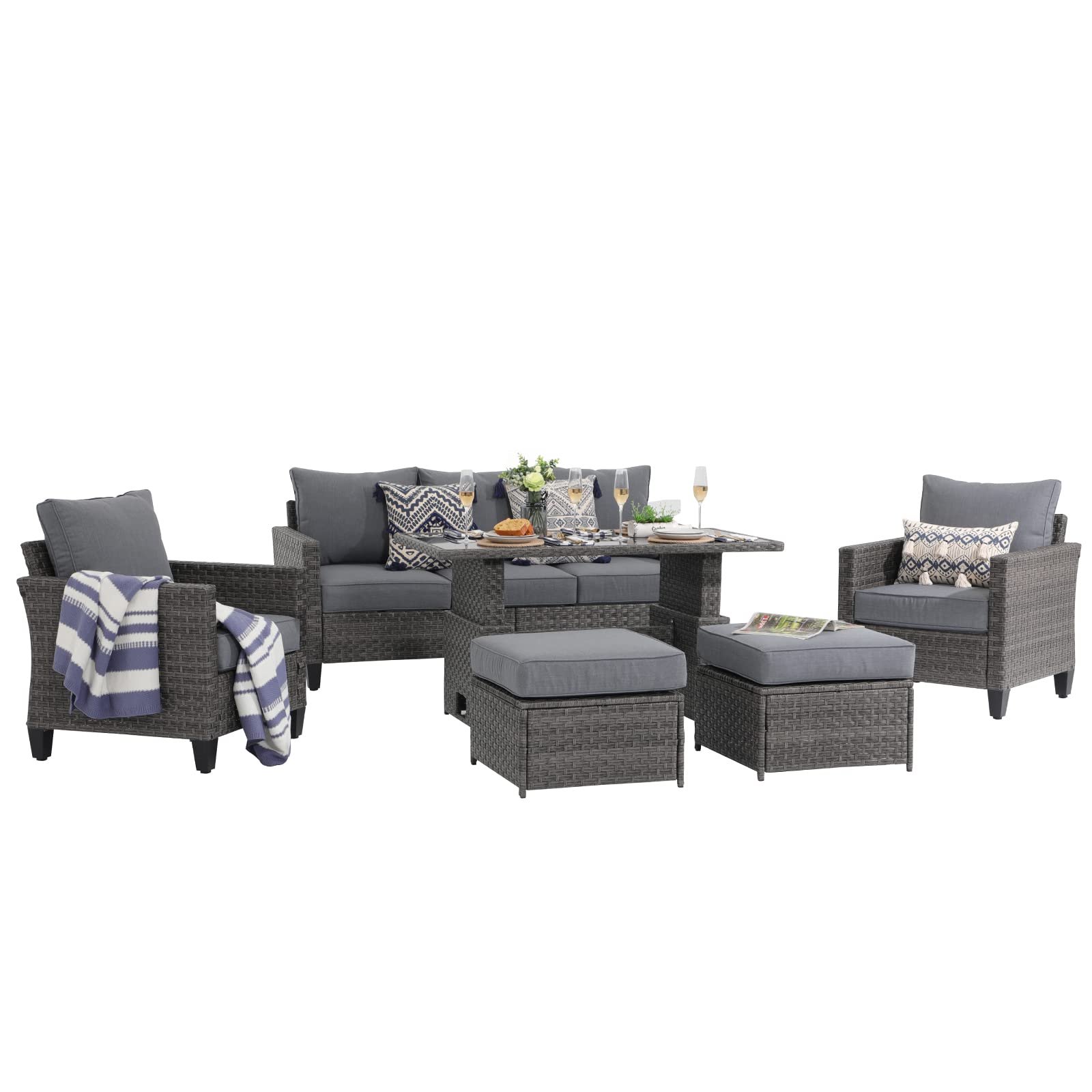 Wicker Outdoor Conversation Set with Lift-top Table Patio Sofa and Dining Table Set