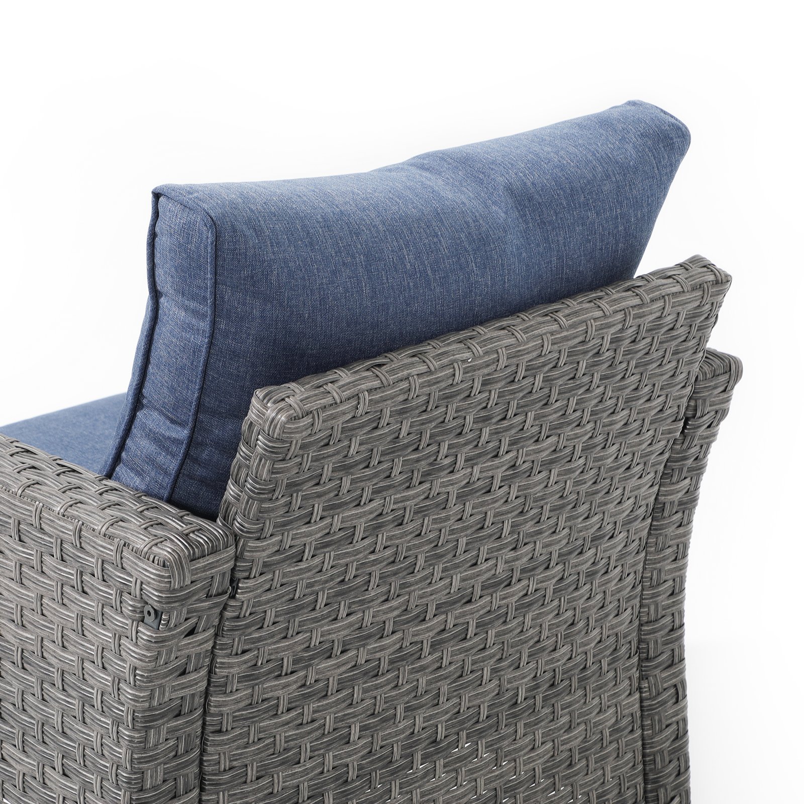 5-11 pcs Outdoor Curved Sofas, Wicker Curved Patio Furniture, Denim Blue