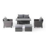 FUNCTIONAL LIFT TABLE – This outdoor furniture set contains an adjustable height table that can easily and quickly rise to the perfect dining level to have a summer barbecue, or cocktail party, or convert to a coffee table sitting out enjoying coffee with ease.