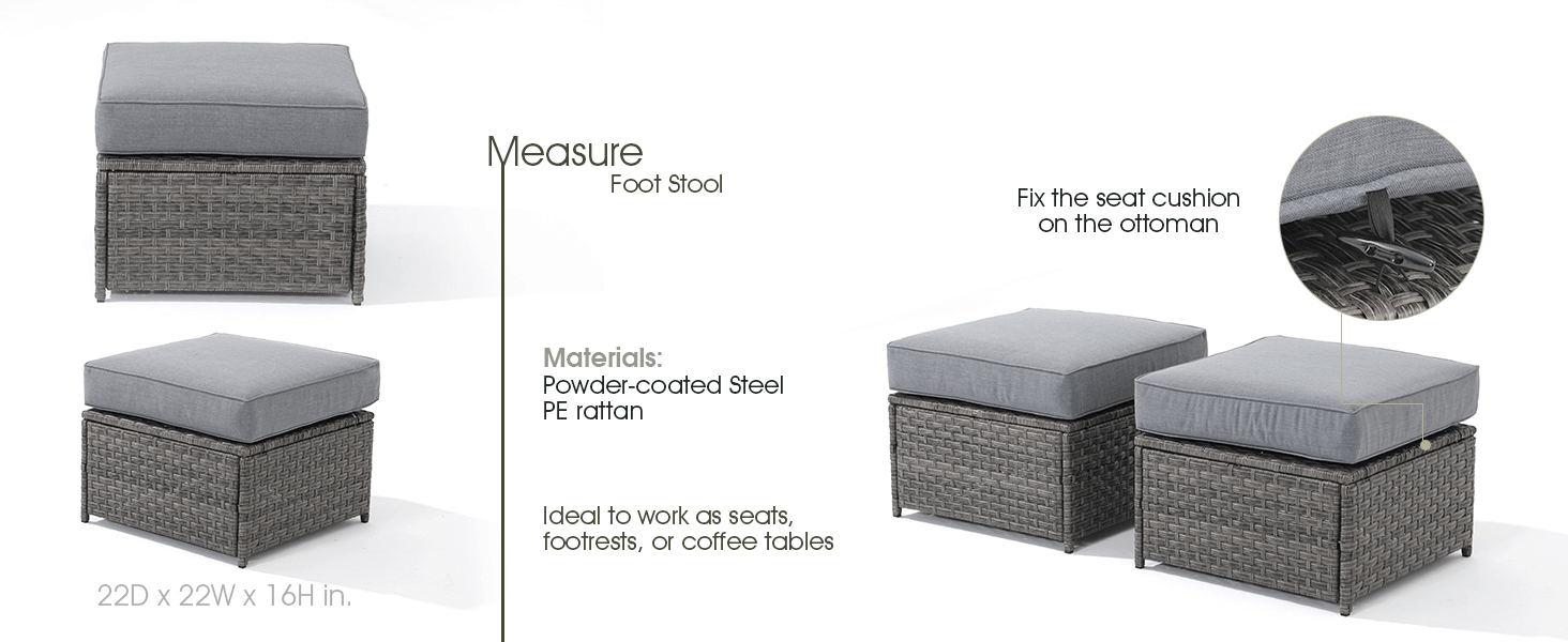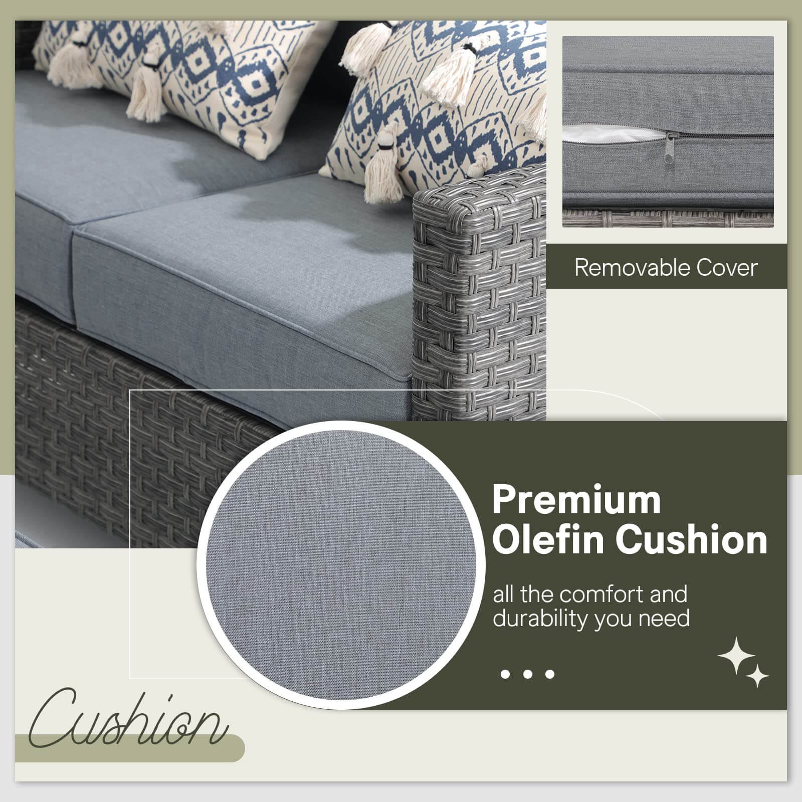 PREMIUM OLEFIN CUSHION – The patio furniture comes with cushions covered in olefin fabric which is durable and fade-resistant, equipped with thick foam for optimal comfort. Removable zip covers for easy cleaning.
