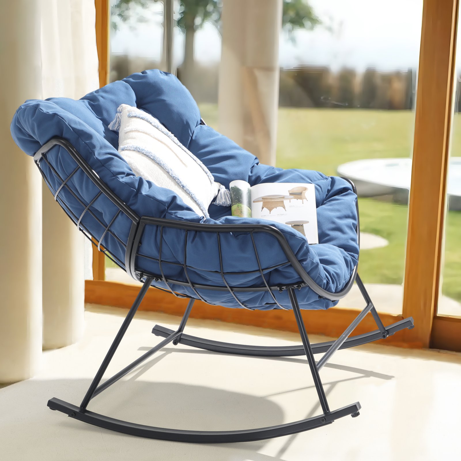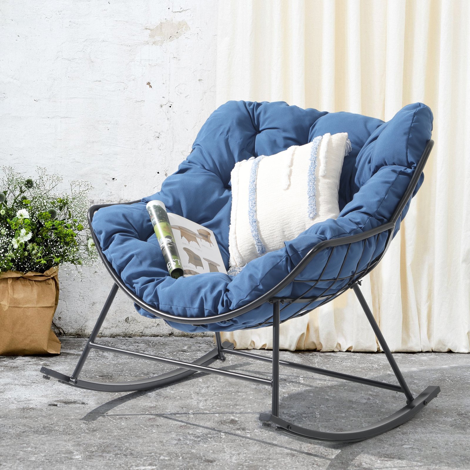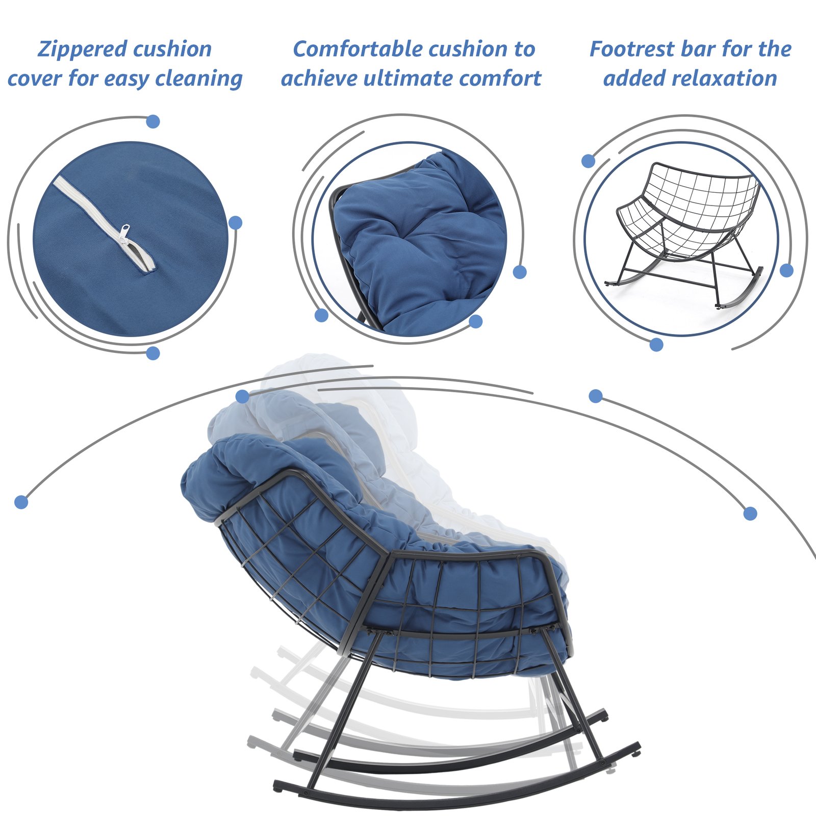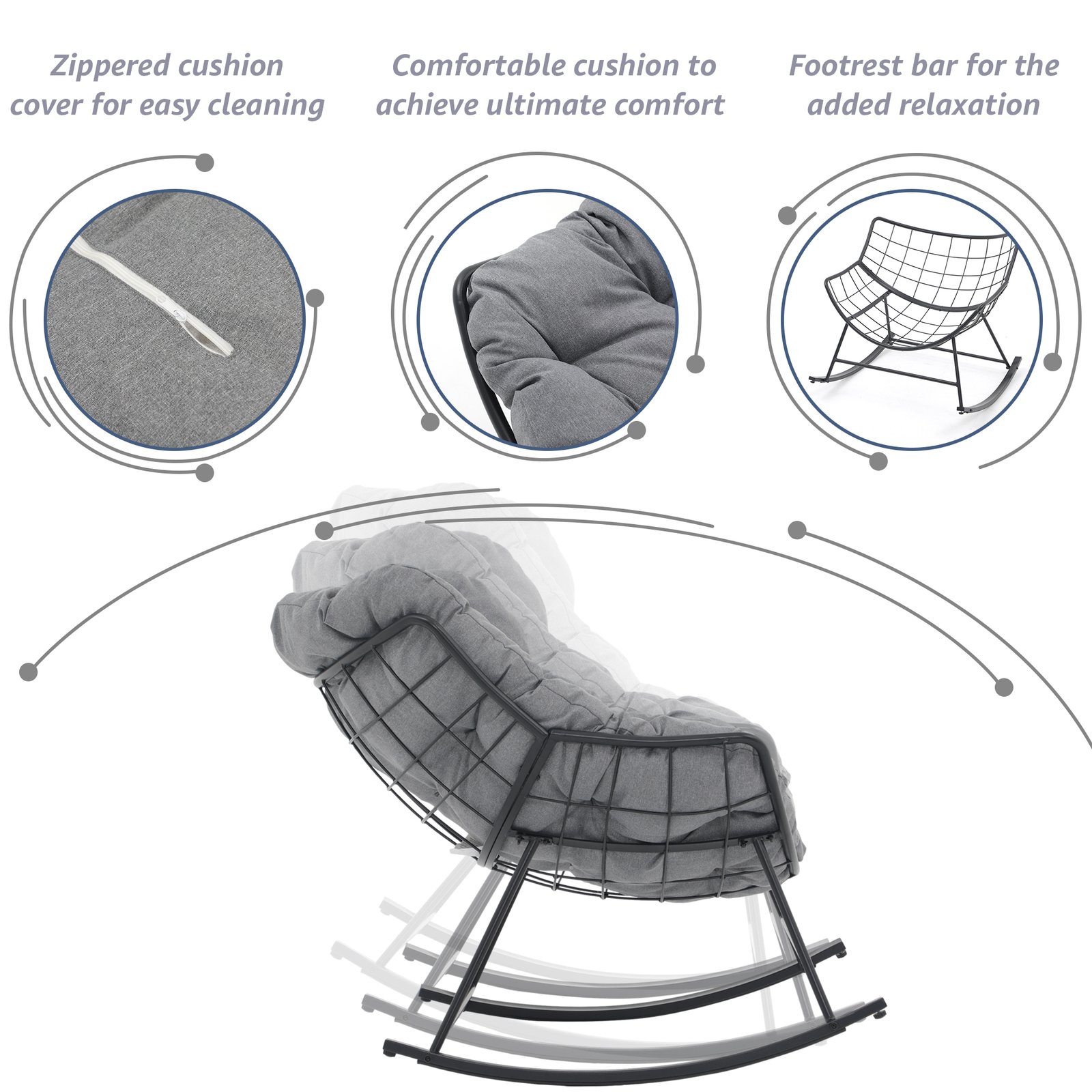 - Ultra-large Comfy Cushion-The oversized cushion and ergonomic curve make the rocking chairs fit your body curve well and provide a comfortable lounging experience. Polyester fabric resists stains, water, fade, and UV rays for long-term use and easy maintenance.